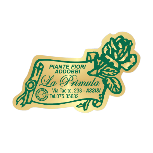 Le Etichette adesive personalizzate per Fioristi, Fiorai e Vivaisti (5000 +1000 OMAGGIO da € 100 – 10000 + 2000 OMAGGIO da € 155) con stampa a caldo risultano di grande pregio per l’incisione della stampa e la luminosità dei colori metallizzati.